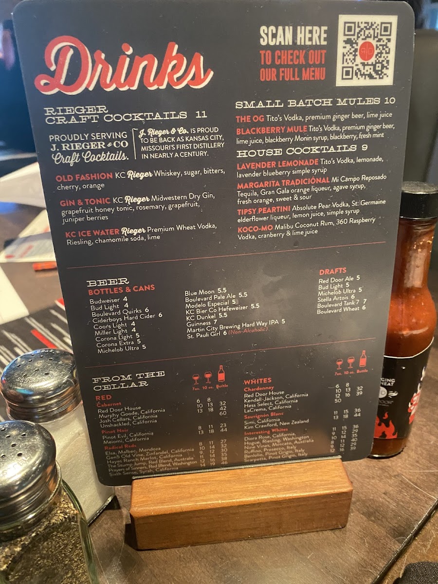 12oz angus woodfire grilled KC strip, herb garlic butter, fries, grilled garlic bread